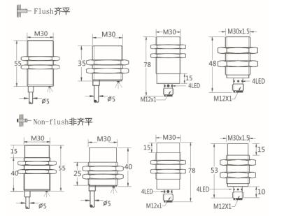 Thread size / 螺紋尺寸:    M30屏蔽式  /  M30非屏蔽式