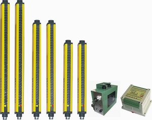 光幕傳感器是由受光器,發(fā)光器,傳輸線,電源線,控制器一起組成的,控制器上有多個接口,是用來接線的,它還有另外一個名字叫安全光柵。 工作的時候,發(fā)光器發(fā)射紅色的光線,光線被受光器接收,倆者之間就形成了一個保護(hù)網(wǎng),當(dāng)有物體進(jìn)入并擋住了保護(hù)網(wǎng)的時候,受光器電路馬上作出反應(yīng),發(fā)出信號,信號被控制器處理并控制,實(shí)現(xiàn)機(jī)械的緊急暫停和警報,這就是它整個的工作機(jī)制。主要運(yùn)用于機(jī) 床 和壓力機(jī)的緊急剎車和控制等。