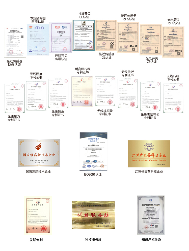 公司簡(jiǎn)介 南京凱基特電氣有限公司位于長(zhǎng)三角六朝古都南京市。依托于高校技術(shù)和自主研發(fā),凱基特已經(jīng)發(fā)展成為一家專業(yè)從事自動(dòng)化工控產(chǎn)品研發(fā)、生產(chǎn)、銷售的高新技術(shù)企業(yè)。公司擁有20項(xiàng)國(guó)家專利,同時(shí)榮獲”民營(yíng)科技型企業(yè)”,“中小型科技型企業(yè)”、“高新技術(shù)企業(yè)”。公司在泰國(guó)、河北、重慶、山東等地成立辦事處,產(chǎn)品遠(yuǎn)銷東南亞、歐洲、非洲、美洲等市場(chǎng)。 質(zhì)量標(biāo)準(zhǔn) 凱基特在不斷發(fā)展擴(kuò)大的同時(shí),對(duì)產(chǎn)品質(zhì)量制定嚴(yán)格標(biāo)準(zhǔn),已通過ISO9001:2015國(guó)際質(zhì)量管理體系認(rèn)證,所有產(chǎn)品均已通過CE認(rèn)證,確保產(chǎn)品性能和質(zhì)量達(dá)到國(guó)際同類產(chǎn)品的先進(jìn)水平,在行業(yè)處于領(lǐng)先地位。 行業(yè)應(yīng)用 凱基特產(chǎn)品包含各類工業(yè)自動(dòng)化傳感器、工業(yè)安全產(chǎn)品、測(cè)量產(chǎn)品、無(wú)線傳輸裝置等,廣泛應(yīng)用于航空航天、航海、鐵路、郵電、通訊、電梯、紡織、石油化工、礦山、冶金、機(jī)床、機(jī)械、煙草、包裝、印刷、食品、計(jì)量、辦公、家電等行業(yè),促進(jìn)自動(dòng)化工業(yè)的發(fā)展。 工業(yè)安全保護(hù)專家 ——專業(yè)的工業(yè)安全解決方案提供商